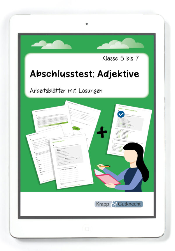 Das PDF enthält einen umfangreichen Abschlusstest mit Lösungen zu Adjektive, abgestimmt auf die Klasse 5 bis 7. Es enthält die wichtigsten methodischen Ansätze aus der Rechtschreibdidaktik. Durch die Konzentration auf Wesentliches ist das PDF aus unserem Lehrerheft Adjektive: Schreiben – Sprache verwenden – Texte gestalten von Aline und Thorsten Utter optimal für den Einsatz im Unterricht geeignet. Ebenfalls nutzbar als Wiederholung zu Hause, für den Nachhilfeunterricht sowie für Förder- und Brush-up-Kurse.