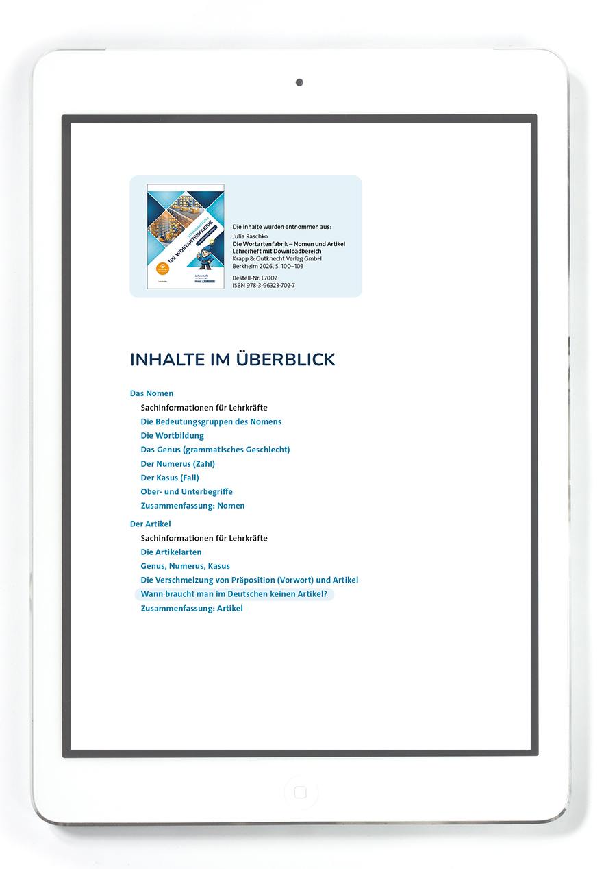 - fördert sicheres Sprachgefühl und korrekten Artikelgebrauch