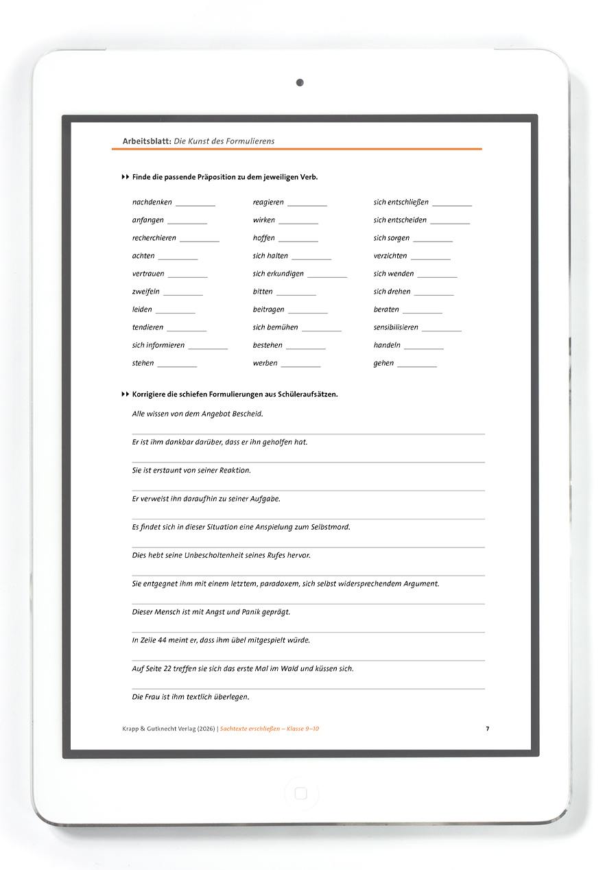 - die Korrektur typischer Fehlformulierungen aus Schüleraufsätzen