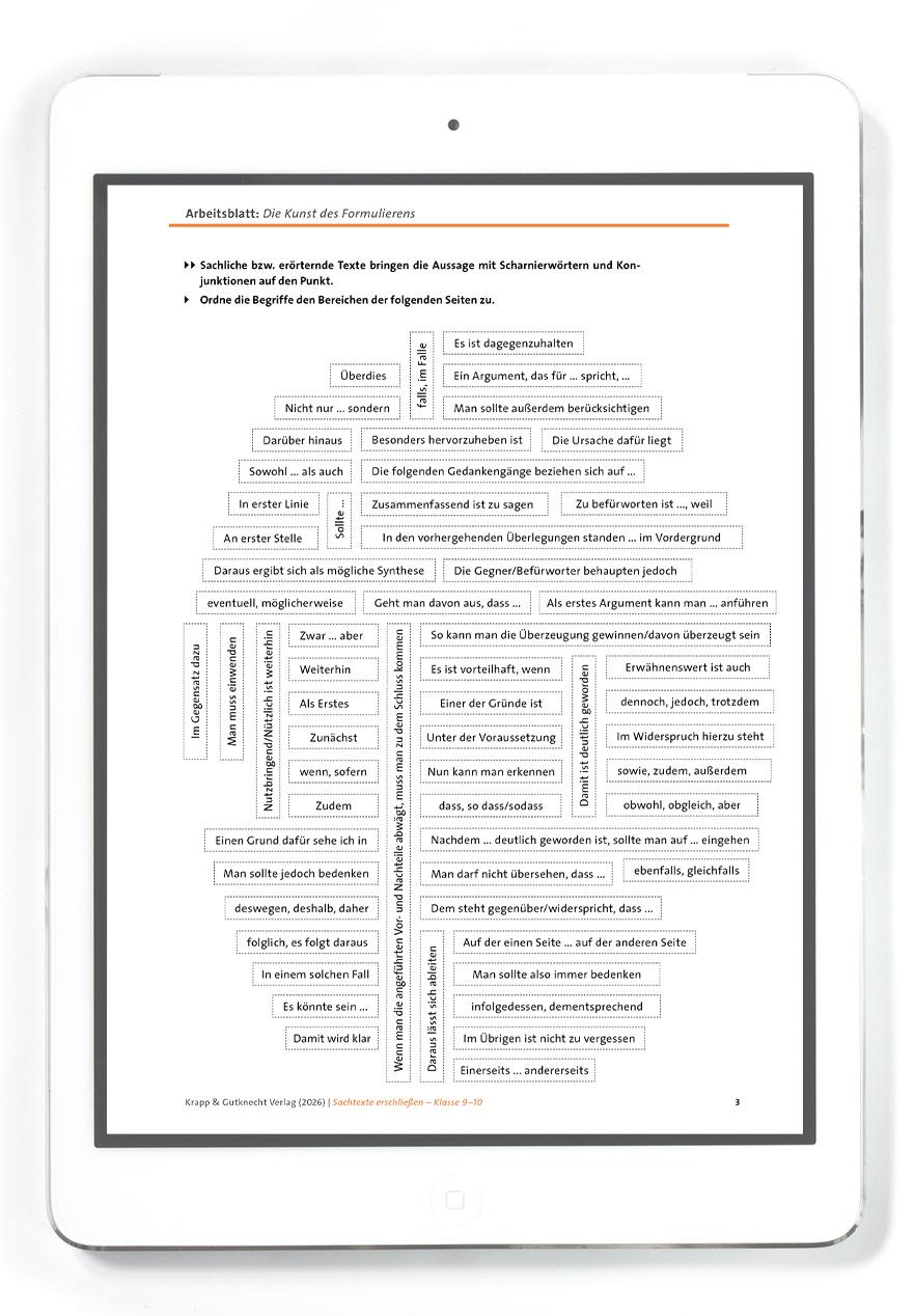 Im Mittelpunkt steht der sichere Umgang mit Scharnierwörtern, Konjunktionen, Präpositionen und Adverbialsätzen, die für klar strukturierte und logisch aufgebaute Texte unerlässlich sind. Die abwechslungsreichen Übungen helfen dabei, Texte sinnvoll zu gliedern, Argumente sprachlich korrekt zu verknüpfen und einfache Hauptsatzreihen durch differenzierte Satzgefüge zu ersetzen.