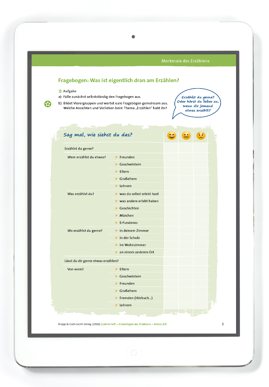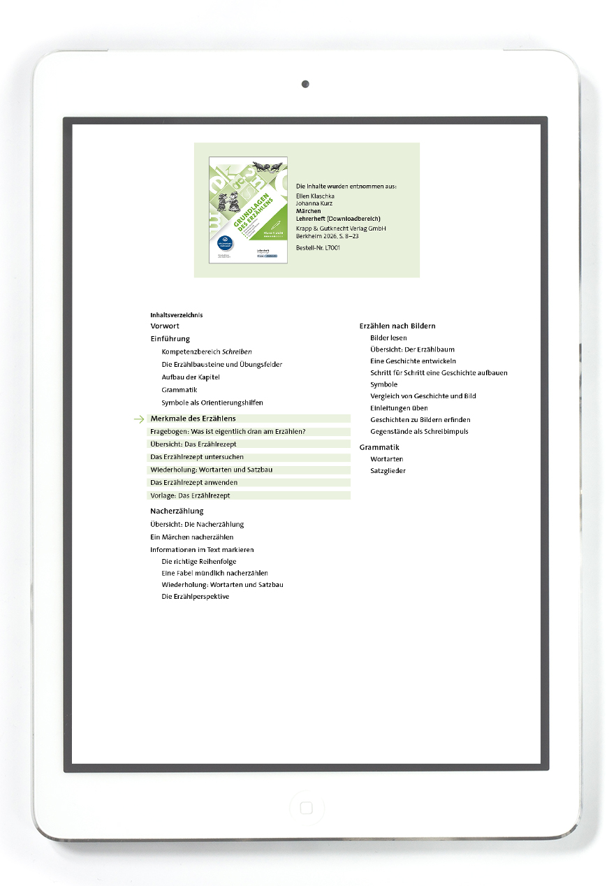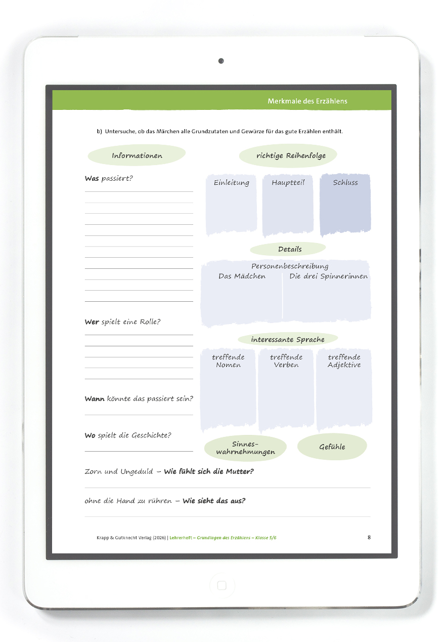 Die enthaltene Arbeitsblätter sind Teil des Lehrerheftes Grundlagen des Erzählens als PDF und entsprechen einem Kapitel.
