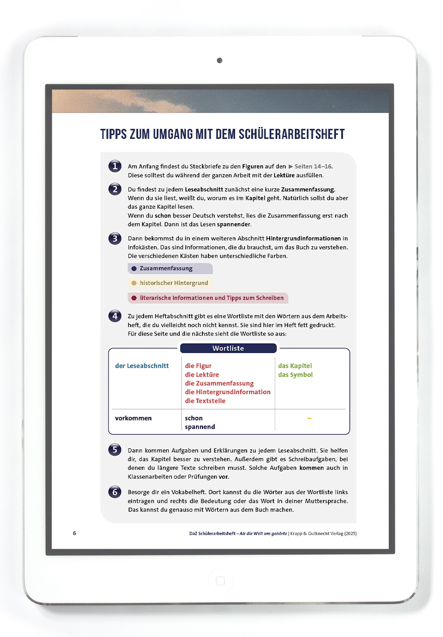 - Tipps zum Lesen des Buchs und zum Umgang mit dem Schülerarbeitsheft