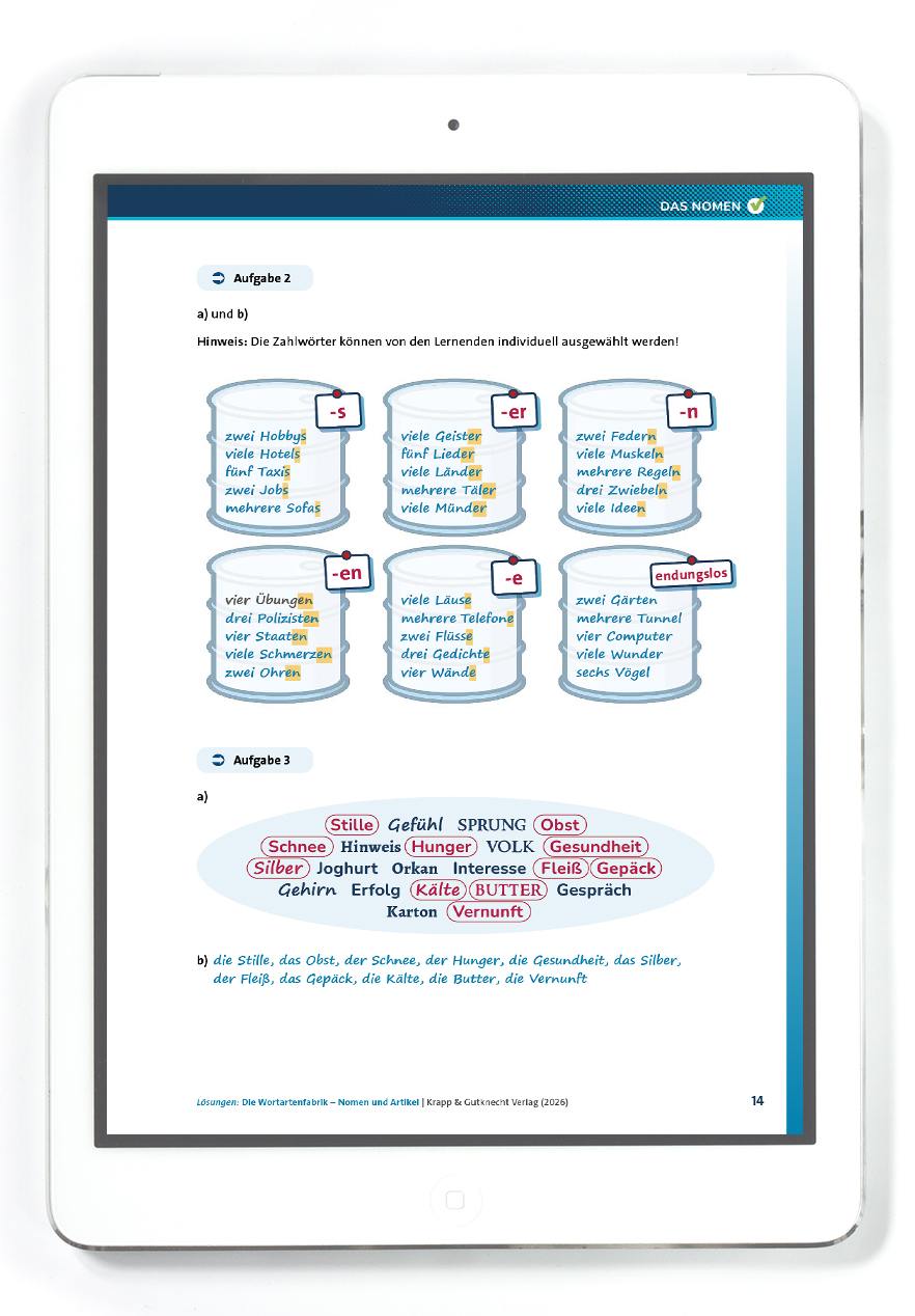 Die Lernenden setzen sich intensiv mit den grundlegenden Prinzipien der Pluralbildung auseinander und lernen, Nomen sicher im Singular und Plural zu verwenden: