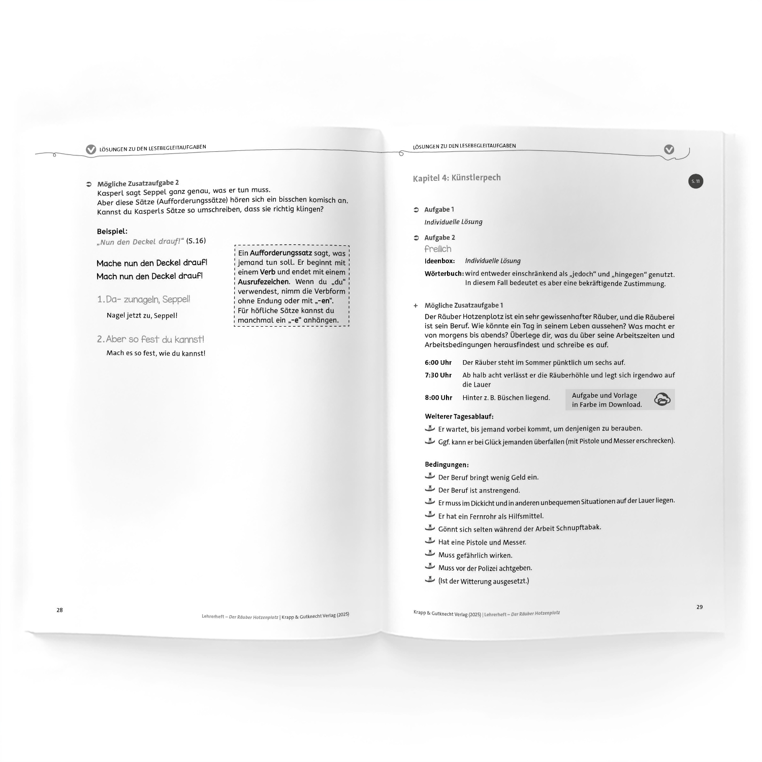 - detaillierte Lösungen zu allen Aufgaben des Lesebegleiters Der Räuber Hotzenplotz