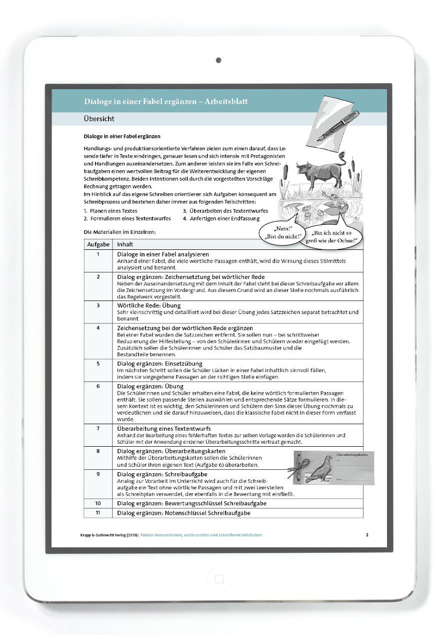 Diese Arbeitsblätter helfen Schülerinnen und Schülern, Dialoge als zentrales Stilmittel in Fabeln zu erkennen und selbst sinnvoll zu ergänzen. Sie lernen, die Wirkung der wörtlichen Rede zu analysieren, Satzzeichen korrekt zu setzen und eigene Dialoge zu gestalten. Durch schrittweise angeleitete Übungen und Schreibaufgaben wird das Textverständnis vertieft und die Schreibkompetenz gestärkt.