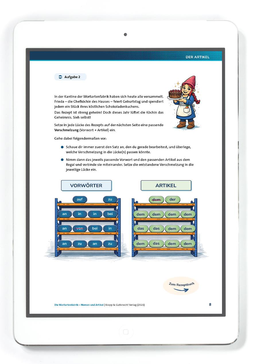 Das PDF ist Teil des Lehrerheftes Die Wortartenfabrik und eignet sich ideal für die Einführung sowie die Übung und Festigung der Artikelarten im Deutschunterricht der Klassen 5 bis 8. Die Lernenden entwickeln ein sicheres Verständnis für die Funktion und Verwendung von bestimmten und unbestimmten Artikeln.