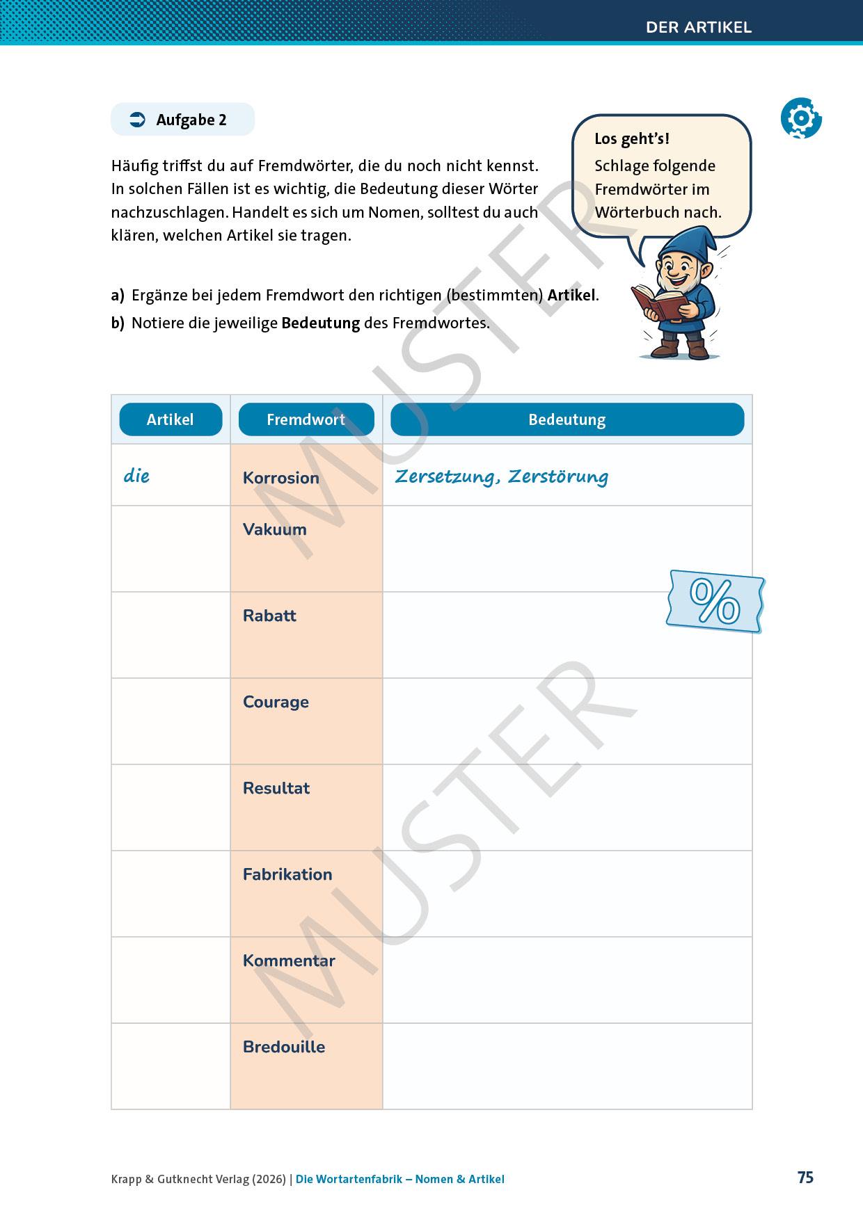- Einstiegstexte und aktivierende Einführungsübungen zu den Nomen und Artikeln