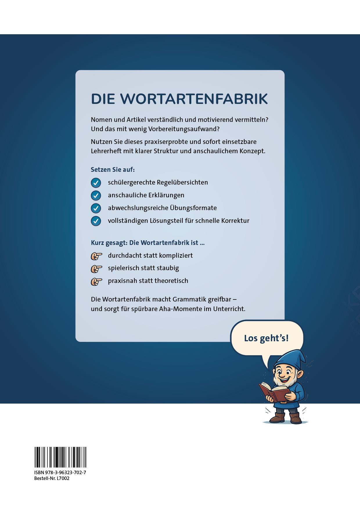 Aufgrund seiner klaren Systematik ist das Heft sowohl für die Themeneinführung als auch für die Wiederholung und Festigung der Wortarten Nomen und Artikel im Deutschunterricht der Sekundarstufe I bestens geeignet. Es enthält umfassende Sachinformationen für Lehrkräfte, schülerfreundliche Regelübersichten, abwechslungsreiche Übungen und einen vollständigen Lösungsteil, wodurch ein punktgenauer und flexibler Einsatz im Unterricht ermöglicht wird.