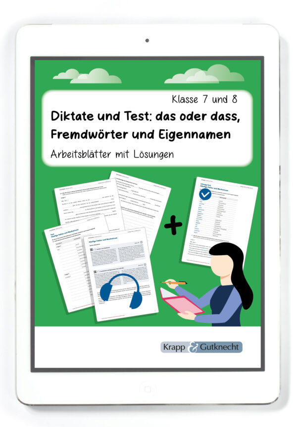 Diese PDF vermittelt zentrale Rechtschreibthemen, bei denen viele Schüler*innen der Klassen 7 und 8 unsicher sind: die Unterscheidung von „das“ und „dass“, der richtige Umgang mit Fremdwörtern sowie die Schreibung von Eigennamen. Mit klar strukturierten Aufgaben, abwechslungsreichen Übungsformaten und zwei motivierenden Diktattexten eignet sich das Material ideal für den Einsatz im Unterricht, in der Nachhilfe oder zu Hause.