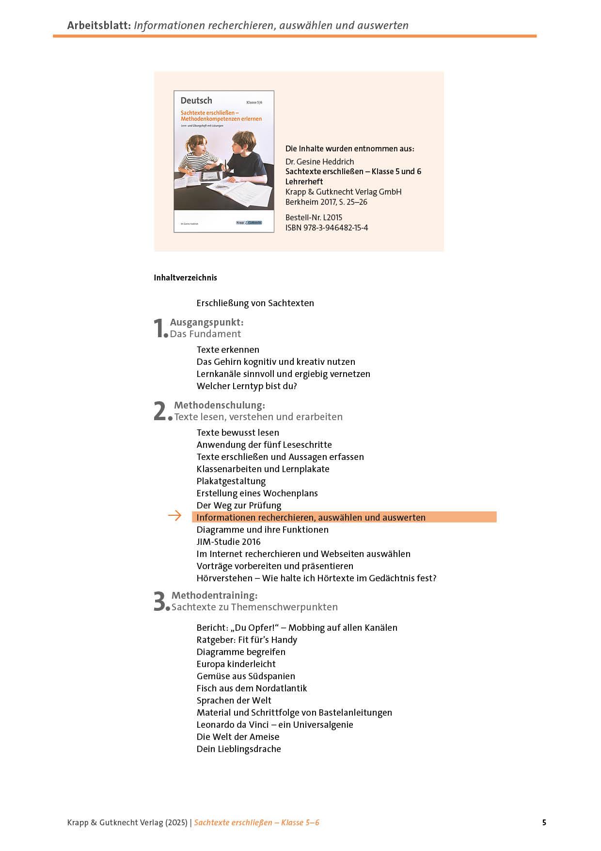 Das Material erklärt anschaulich die wichtigsten Informationsquellen – von Bibliothek und Fachbuch über Zeitschriften bis hin zu Suchmaschinen im Internet. Dabei werden praxisnahe Tipps gegeben, wie man seriöse Seiten erkennt, Daten richtig zitiert und eigene Texte sicher formuliert.