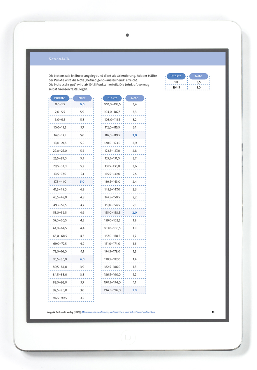 - Bewertungsbogen und Notentabelle für eine faire, transparente Bewertung