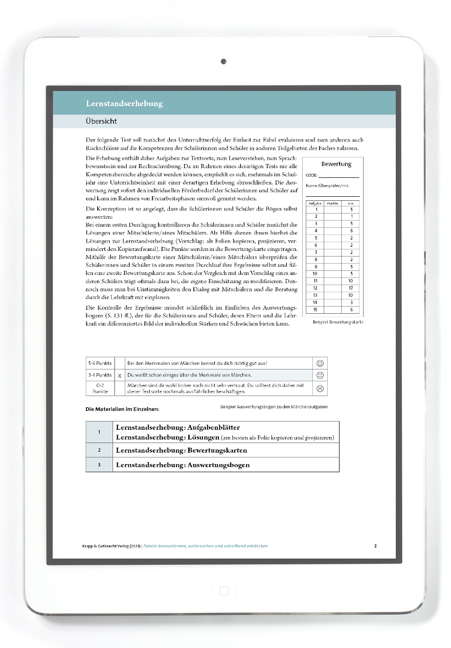 - Bewertungsbogen, Auswertungsraster und Lösungen zur Selbstkontrolle