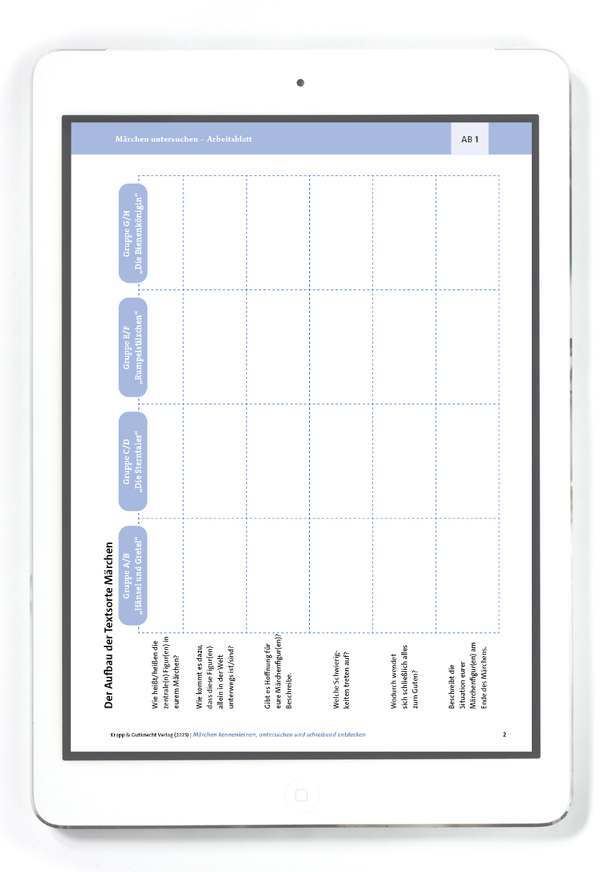 Das Material bietet einen klar strukturierten Zugang zur Märchenanalyse und eignet sich hervorragend für Gruppen- oder Projektarbeit. Lehrkräfte können es flexibel einsetzen – zur Einführung, Vertiefung oder als Grundlage für Präsentationen und Diskussionen. Die Aufgaben regen zum Nachdenken, Vergleichen und eigenständigen Arbeiten an.