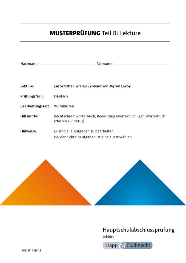 Diese Musterprüfung für den Hauptschulabschluss in Baden-Württemberg bereitet gezielt auf den Prüfungsteil B – Lektüre vor. Grundlage ist die Pflichtlektüre Ein Schatten wie ein Leopard von Myron Levoy, die sich mit Themen wie Identität, Gewalt, Freundschaft, Schuld und persönlicher Entwicklung auseinandersetzt.