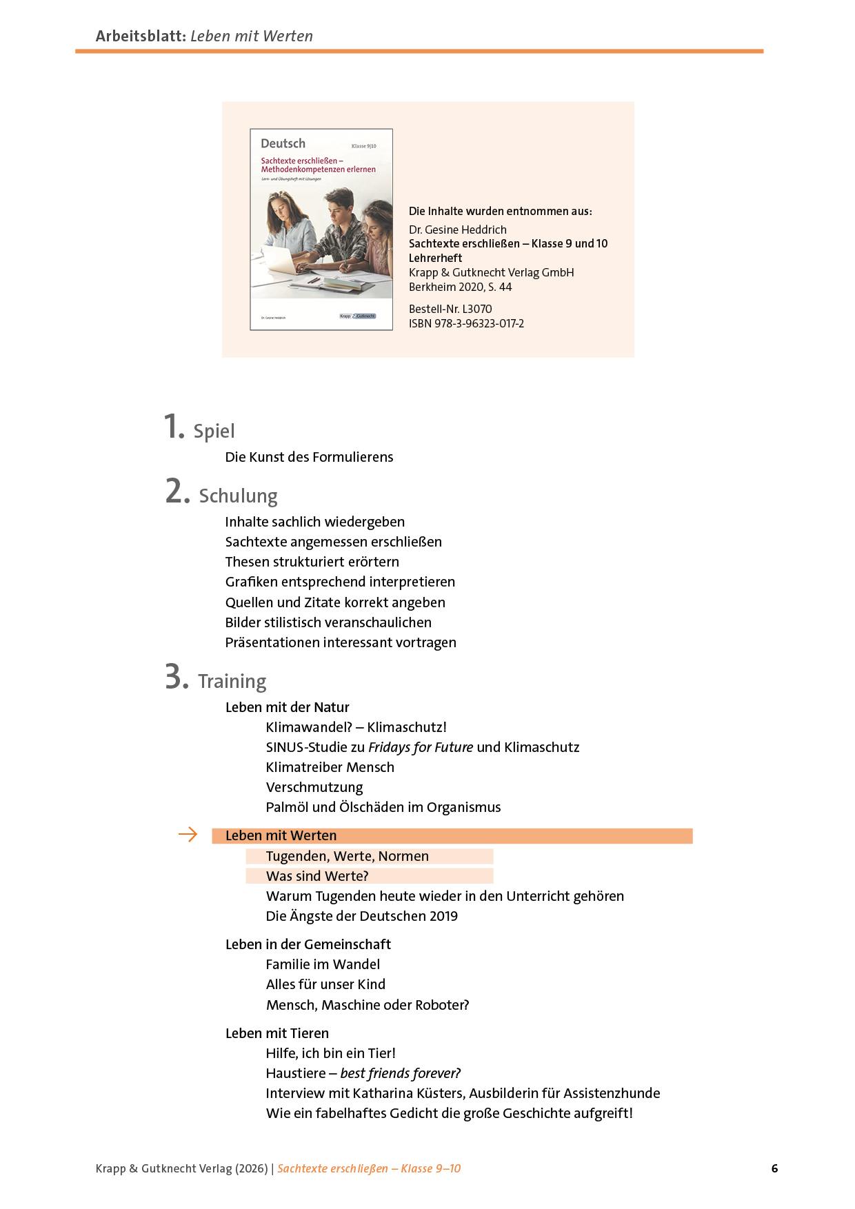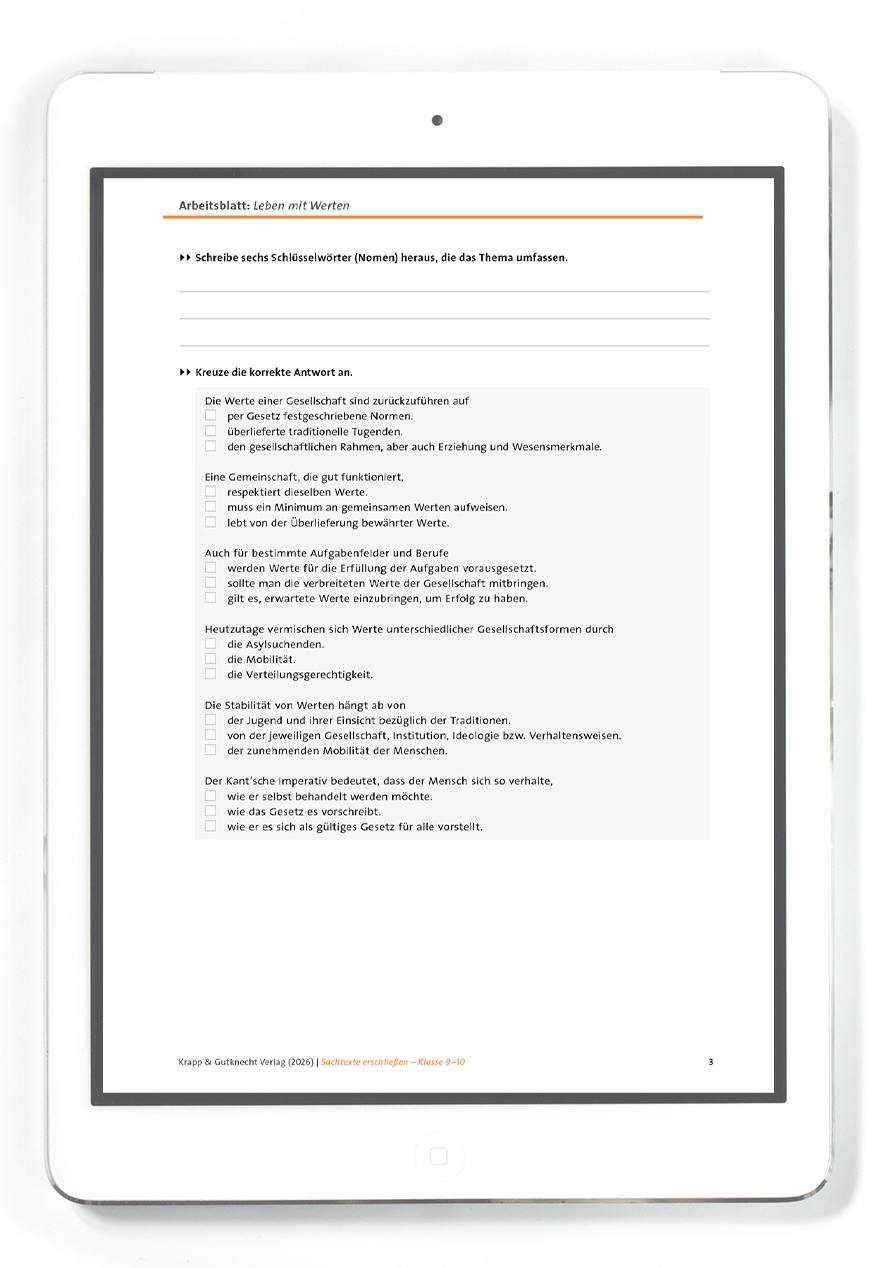 - einen Sachtext zu Werten, Tugenden und Normen