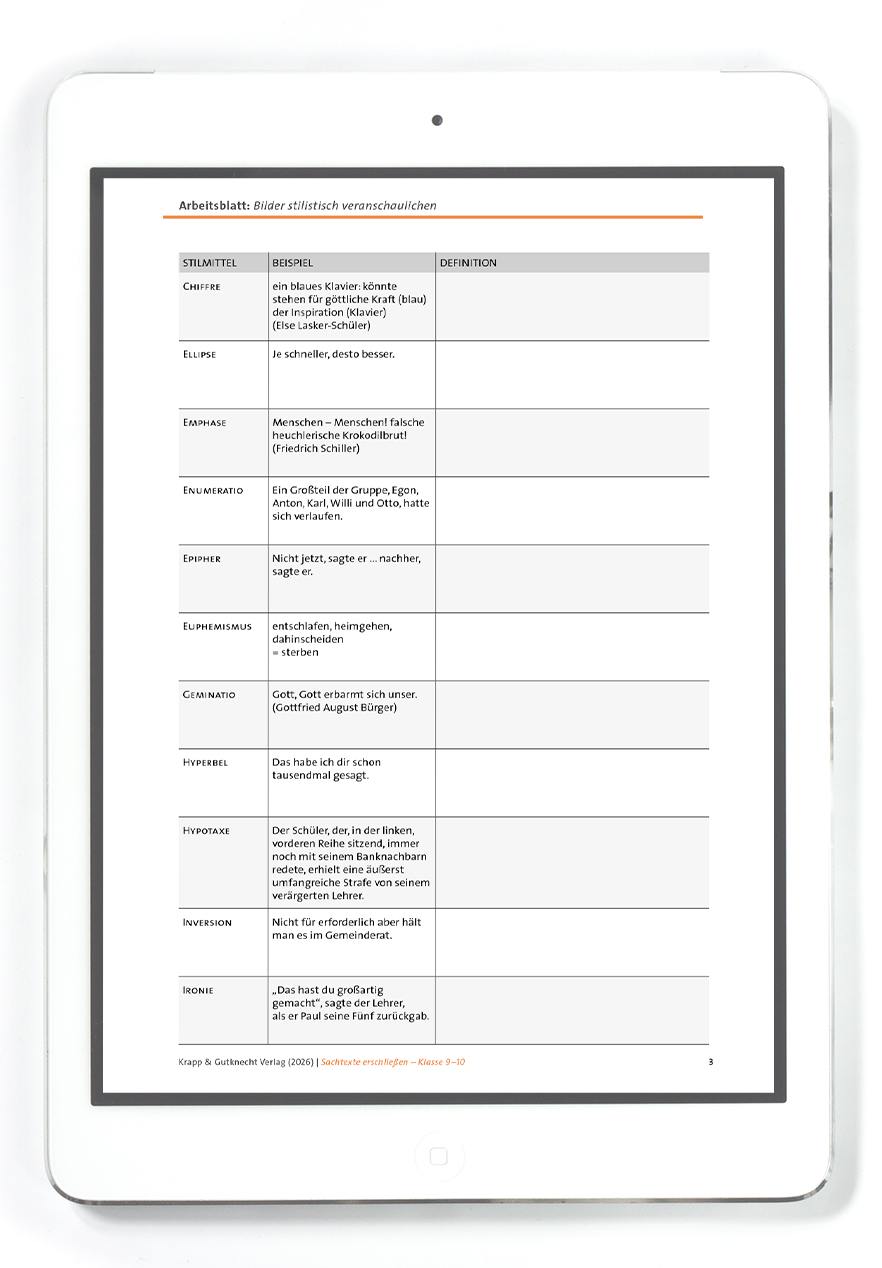- Übungen zum Erkennen, Benennen und Deuten von Stilmitteln