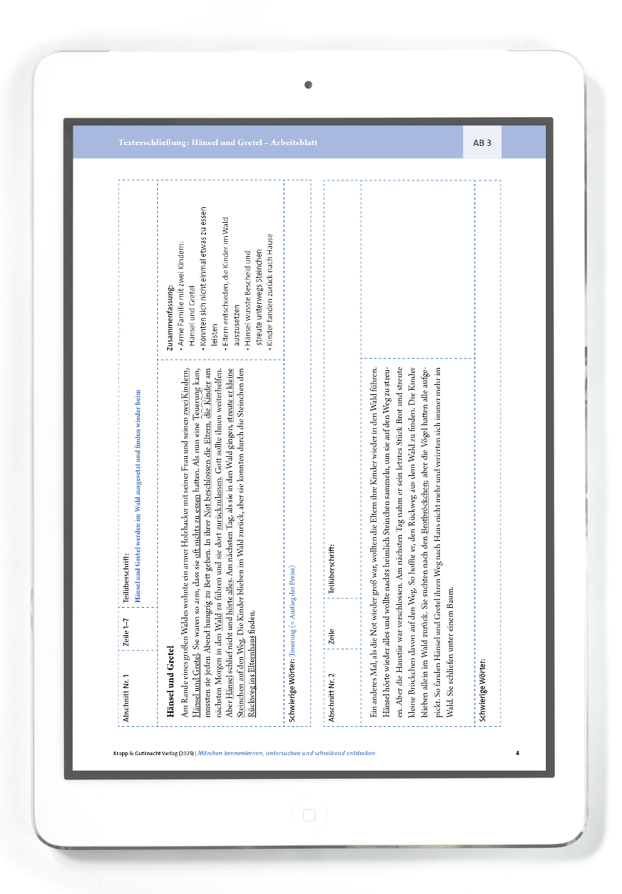 Das Material bietet eine strukturierte Anleitung zur Texterschließung und eignet sich ideal, um das Märchenverständnis zu vertiefen. Lehrkräfte können die Aufgaben flexibel im Unterricht einsetzen – für Einzel-, Partner- oder Gruppenarbeit. Durch die Kombination aus analytischen und kreativen Elementen wird sowohl die Lesekompetenz als auch die sprachliche Ausdrucksfähigkeit gestärkt.