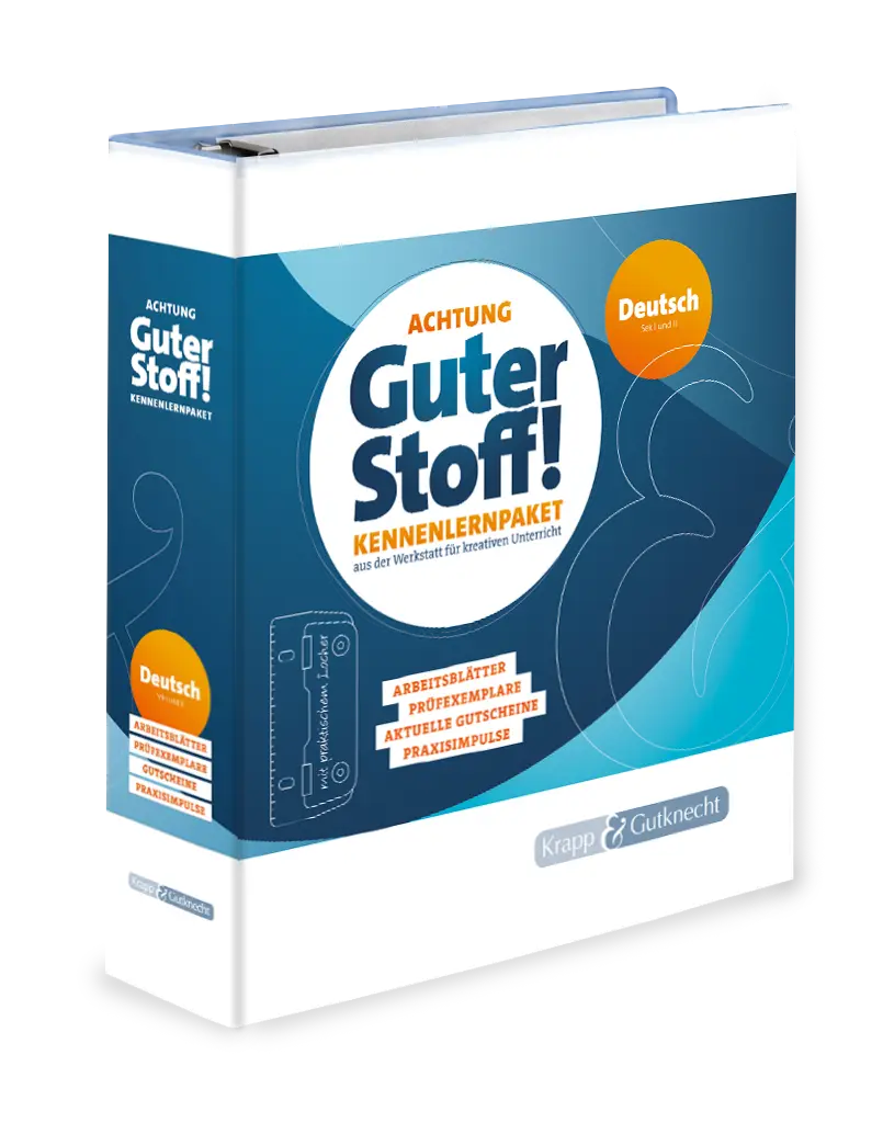 Unser Kennenlernpaket bieten Lehrkräften sowie Referendarinnen und Referendaren im Referendariat einen kompakten Einblick in bewährte Materialien aus dem Programm des Krapp & Gutknecht Verlags.